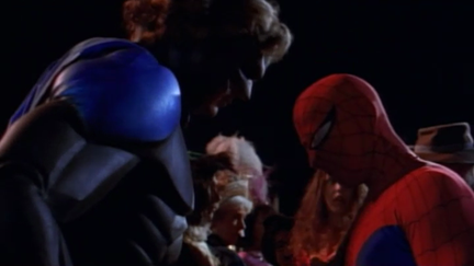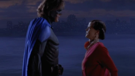 I can’t help but think about that when Night Man makes its own little stab at profundity, and how without MST you and I wouldn’t be wasting our time picking on this dumb little show and its outsized ambitions. Night Man’s janky, DIY, best-actors-we-could-find-at-the-bus-depot cast are so in over their heads and it’s a miracle they were able to scrape together anything that even remotely resembles conventional television. The average Night Man production budget was probably less than the catering budget of an episode of Lois & Clark, and I have it on good authority that the catering budget for L&C was a plastic red cup full of quarters on a folding chair in between two vending machines a couple of lots over. Night Man wasn’t working with much is what I’m saying. So should I maybe go easier on them? Try not to be so smug and superior? Should I rein in the cheap shots about the community theater understudy level of acting, stop pointing out how cheap it all looks and narratively incoherent it all is? Yes, yes, yes, yes, and yes. I’m not going to, but, you know, that doesn’t mean that I don’t know that I should. And isn’t that, in its own way, the really important thing?